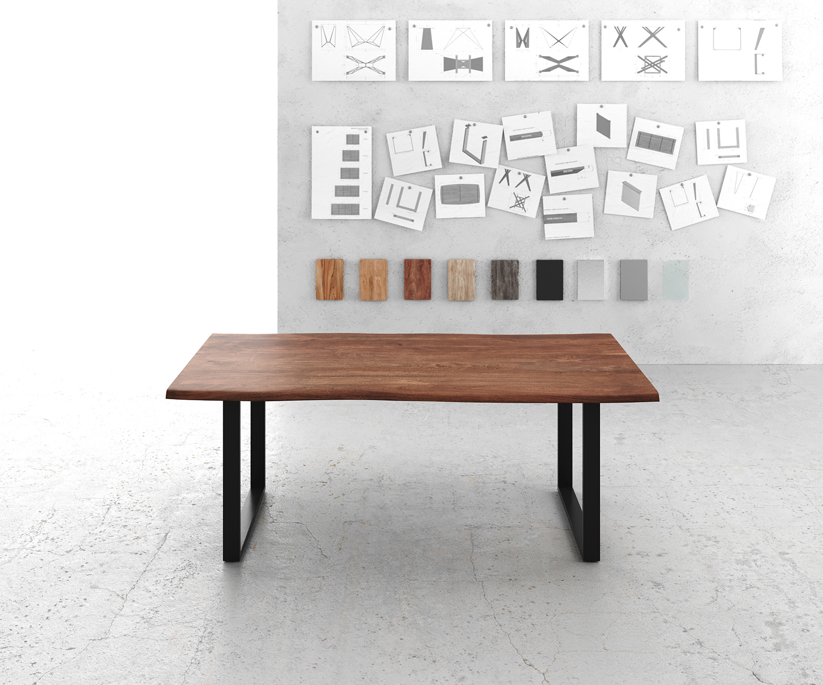 Klasická podnož ve tvaru lyžin z práškově lakovaného kovu je v matné černé barvě a dovedně zvýrazňuje každou desku stolu s nenucenou elegancí. Díky vynikajícímu zpracování je podnož obzvlášť odolná proti poškrábání a nárazům. Skvěle se hodí do různých interiérových stylů a promění váš jídelní stůl v mimořádně odolné místo setkávání ve vašem domově.
