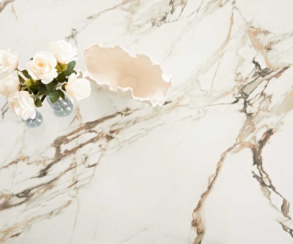 Bohatý, nezkrotný a plný životní radosti – jídelní stůl Edge s keramikou Calacatta Luxe