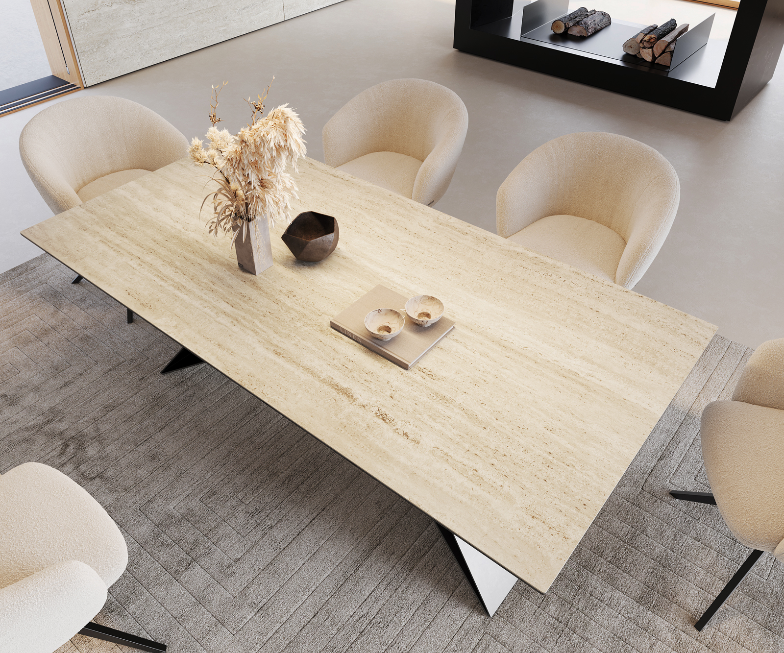 Výrazně jiný, nádherně středomořský – jídelní stůl Edge z keramiky Travertin