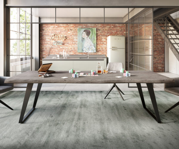 Vyrobený z obzvláště tvrdého akáciového dřeva, stůl Live-Edge zaujme svými jemně zakřivenými, přirozenými okraji dřeva a exkluzivním, stříbřitě lesklým platinovým odstínem. Kvalitní zpracování masivního dřeva a jeho působivý design dělají z tohoto jídelního stolu extravagantní středobod tvého jídelního prostoru. Každý stůl Live-Edge je jedinečný originál, který přitahuje obdivné pohledy, a zároveň se harmonicky začleňuje do mnoha stylů zařízení. Klasická, obdélníková deska nabízí vynikající komfort místa a díky své obzvlášť vysoké kvalitě velmi dobře odolává každodenním nárokům.