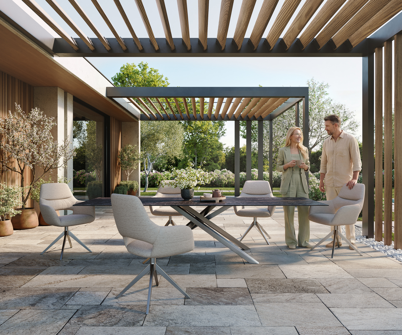 • Elegantní deska stolu z kvalitní keramiky, ideální pro venkovní použití