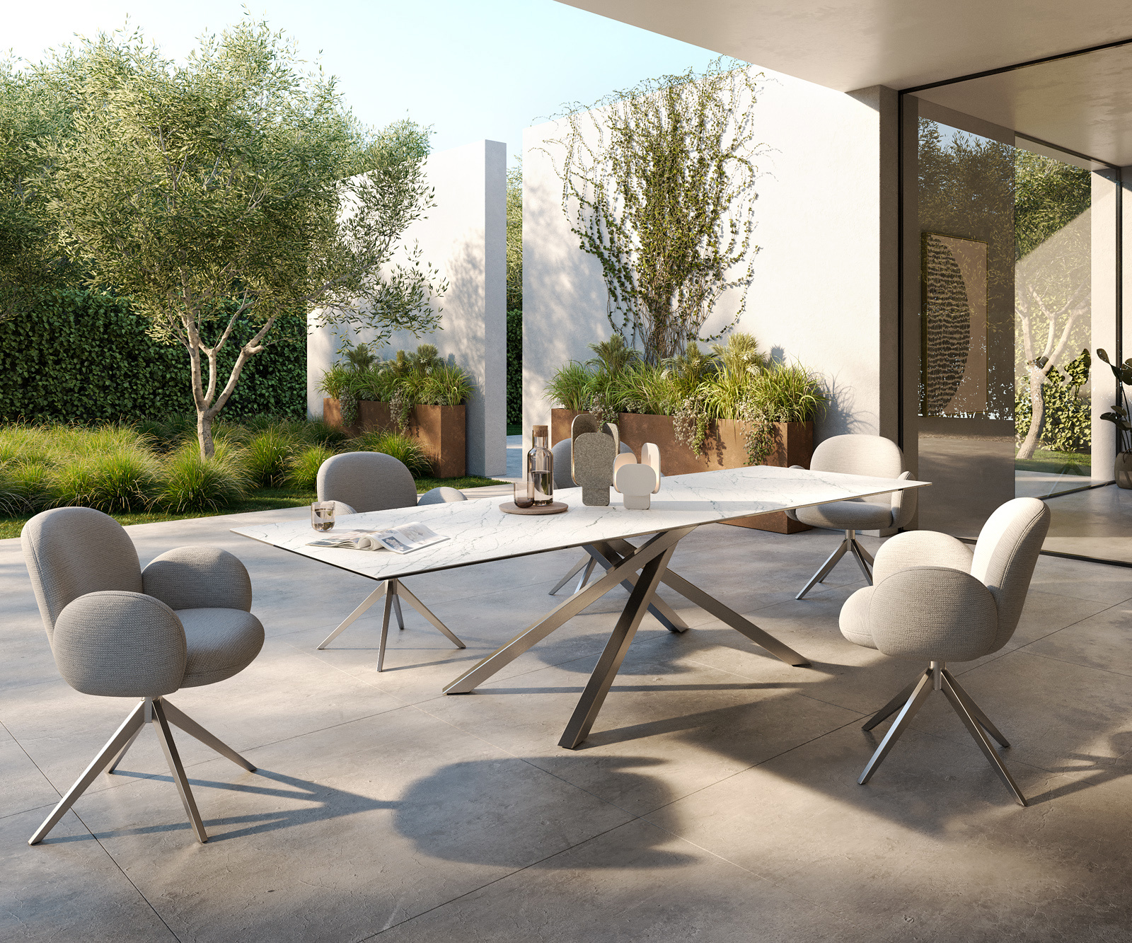 Elegantní deska stolu z pravé keramiky Laminam® dělá z tohoto stolu Edge něco zcela výjimečného. Byla totiž inspirována slavným sochařským mramorem a díky své hladké, téměř měkké struktuře věrně odráží podstatu tohoto úžasného materiálu působivým způsobem. Přesto je deska zvlášť odolná proti poškrábání a dodává tvému venkovnímu prostoru jedinečně elegantní atmosféru.