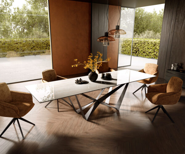• Deska stolu je vyrobena z jedné keramické desky a získává svou jedinečnost v harmonickém celkovém vzhledu.