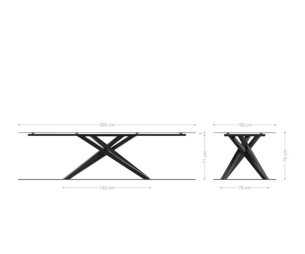 Jídelní stůl Edge 300×100 cm keramika Onyx Pearl křížová podnož hranatý nerezová ocel grafitová