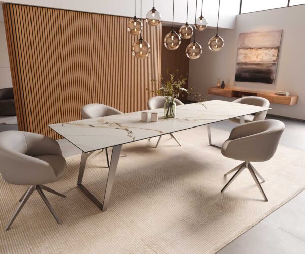 Okázalý, nespoutaný a plný životní radosti – jídelní stůl Edge s keramikou Calacatta Luxe