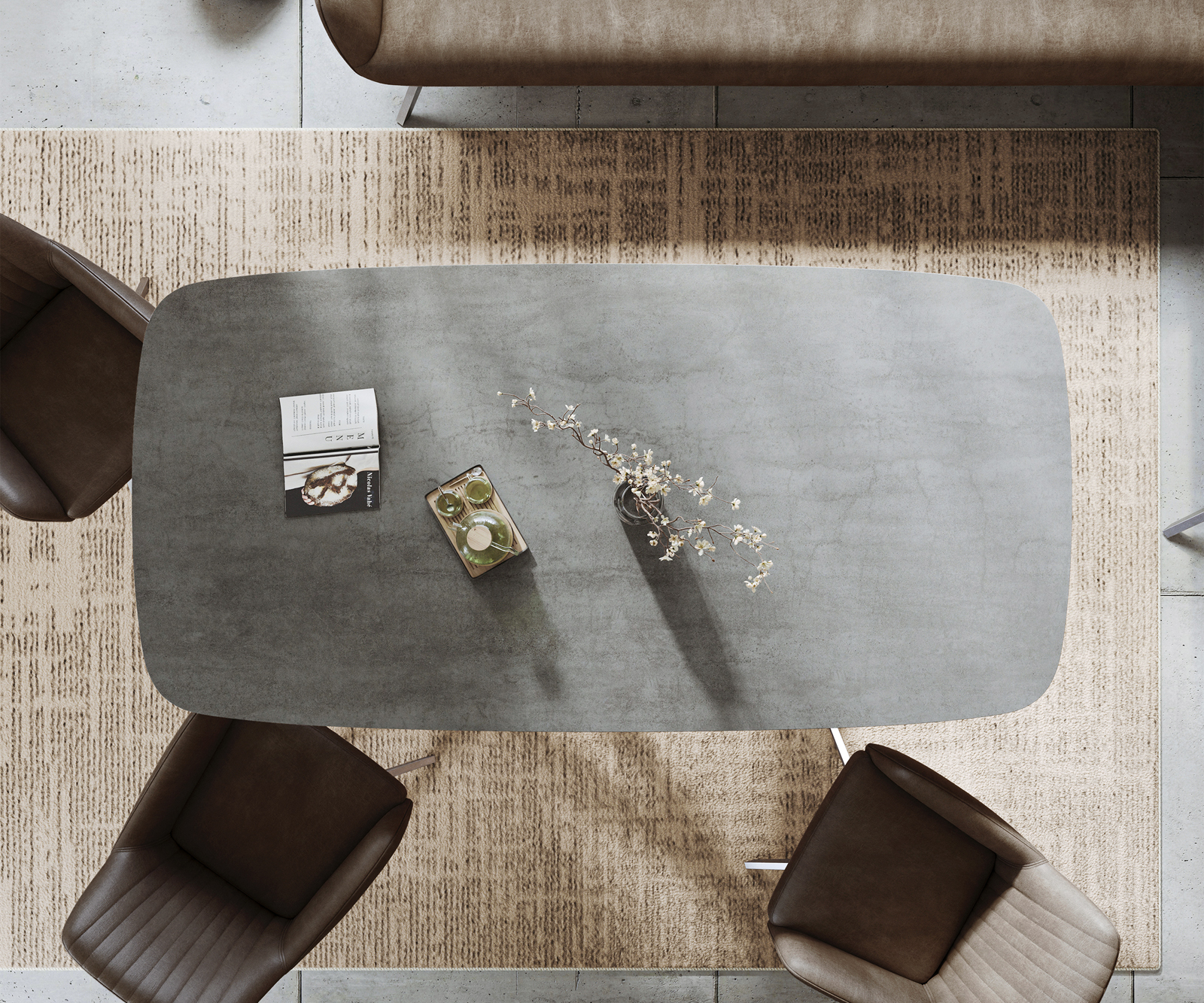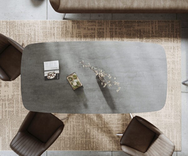- Deska stolu je vyrobena z jedné souvislé keramické desky a získává svou jedinečnost v harmonickém celkovém vzhledu.