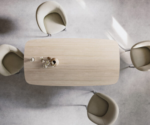Vyrobeno z pravé italské keramiky Laminam® v přírodním kamenném vzhledu – jídelní stůl Edge ve tvaru lodi