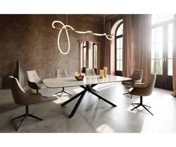 - Deska stolu je vyrobena z jedné souvislé keramické desky a získává svou jedinečnost v harmonickém celkovém vzhledu.
