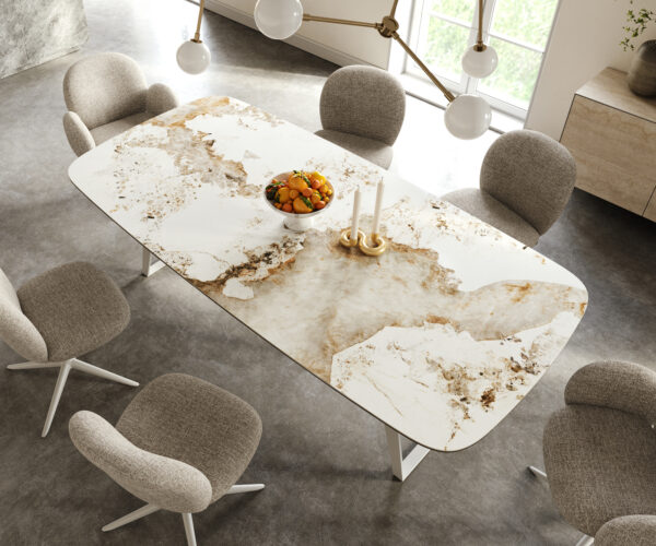 • Deska stolu je vyrobena z jedné celistvé keramické desky a získává svou jedinečnost v harmonickém celkovém vzhledu.