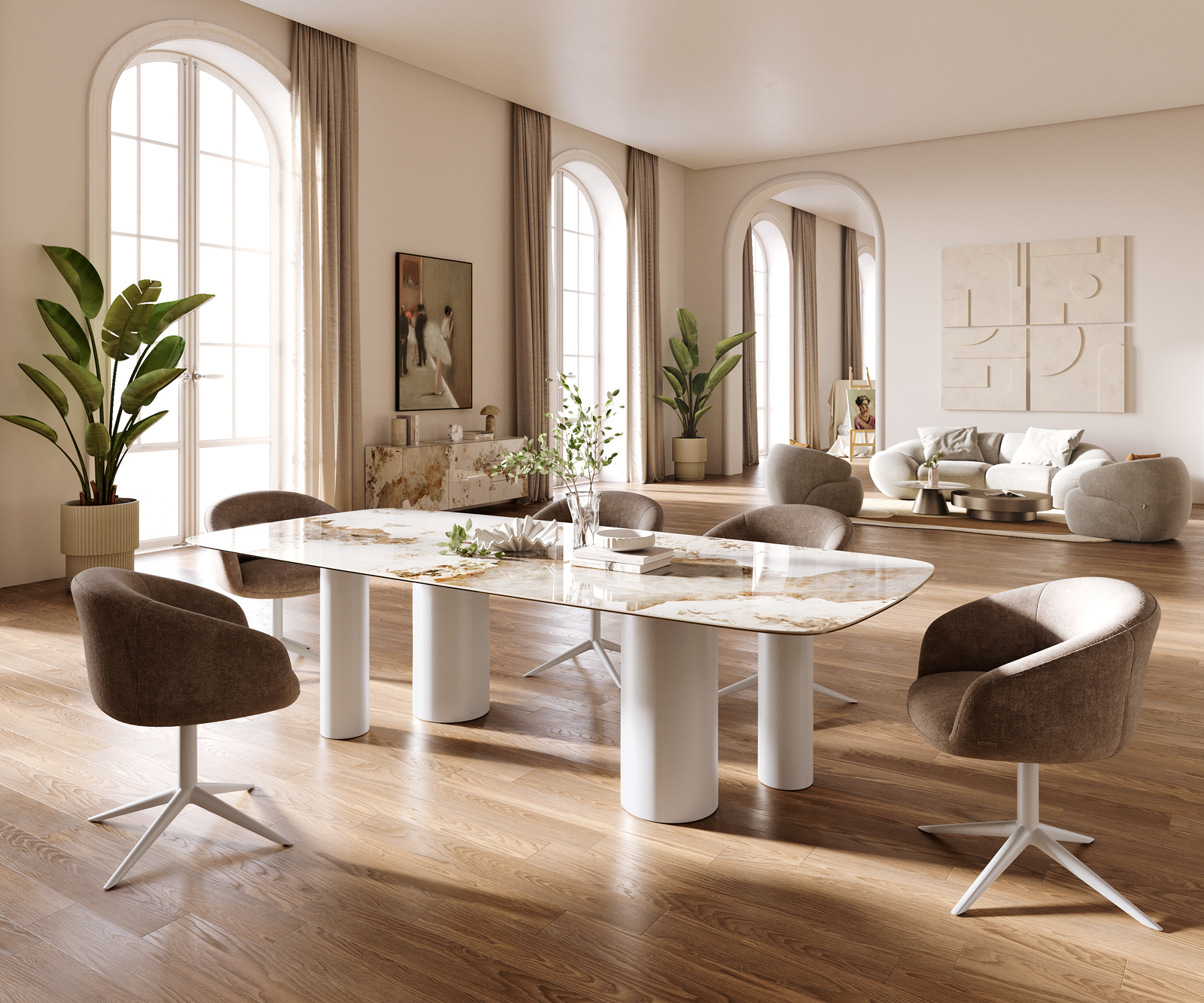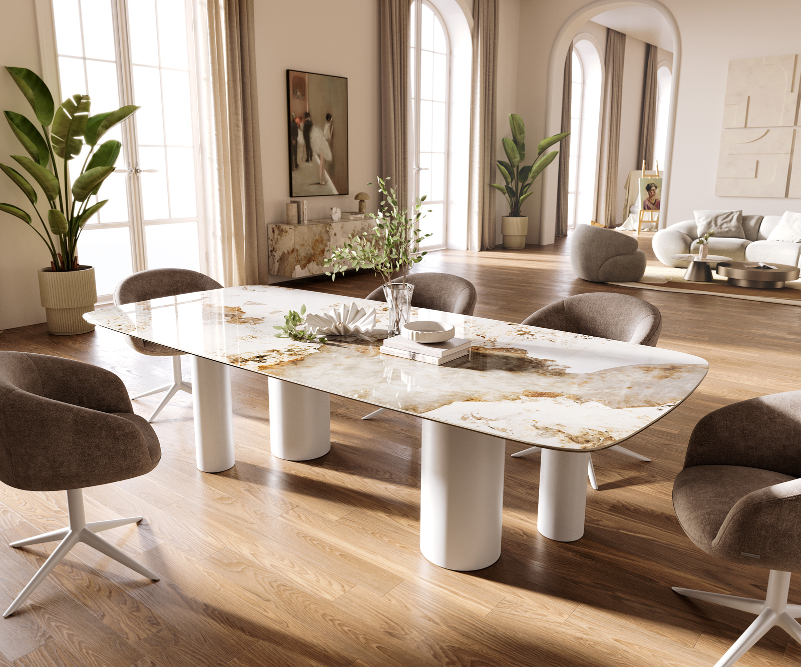 • Deska stolu je vyrobena z jedné celistvé keramické desky a získává svou jedinečnost v harmonickém celkovém vzhledu.