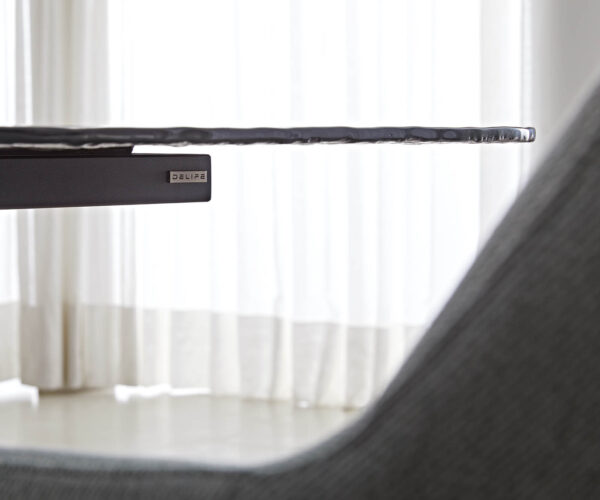 Exkluzivní tavné sklo zasazené do výjimečného oválného tvaru dělá z jídelního stolu Edge nádherný příklad skutečného designového umění. Pro desku stolu se používá float sklo, které je zahříváno až na 800 stupňů a náročně upravováno pomocí razítka. Díky svým reliéfům vzniká působivý 3D vzhled a hmat, který jemně hladí vaše konečky prstů. Deska stolu byla pečlivě nalakována na spodní straně černým odstínem. To vašemu stolu dodává výrazný a moderní vzhled, který vašemu jídelnímu prostoru propůjčí nekonečně stylovou atmosféru.