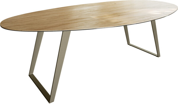 S tímto stolem Edge proměníte svůj jídelní kout a vytvoříte mu příjemnou a krásnou atmosféru. Oválná deska stolu je vyrobena z pravé keramické Laminam® desky z Itálie. Ta má po celém světě vynikající pověst a odborníci ji chválí pro její skvělou snadnou údržbu a mistrovské napodobení hodnotných barev a materiálů. Mistři řemesla se nejlépe projevují v této elegantní desce. Jemné barevné odstíny, které připomínají vzácné dubové dřevo, byly inspirovány jedinečnými pískovými tóny před slavnou benátskou lagunou a vyzařují klidnou a fascinující přirozenou krásu. Hladký povrch byl tak pečlivě upraven, že je na dotek jemný, téměř měkký. Tak příjemný, vnímavý a blahodárný jídelní stůl jste ještě nezažili.