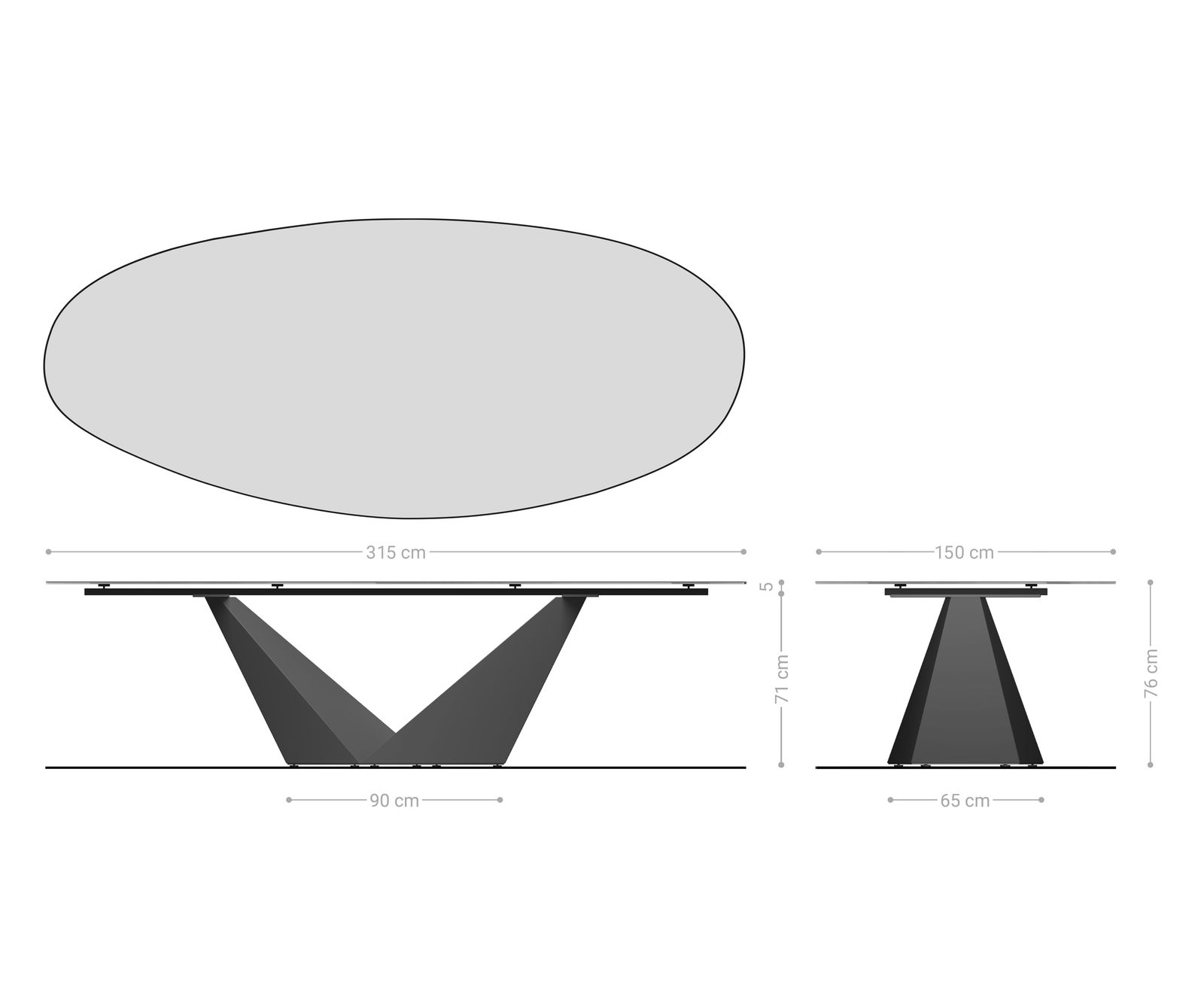 • Rozměry desky stolu: Š315 × H150 × V1 cm