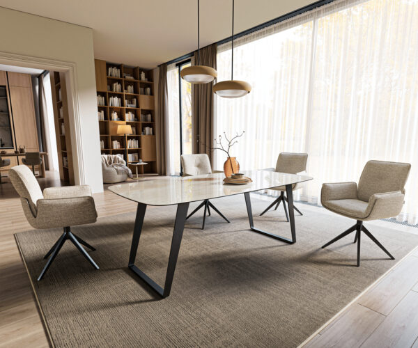 • Deska stolu je vyrobena z jednoho celistvého keramického plátu a získává svou jedinečnost v harmonickém celkovém vzhledu.