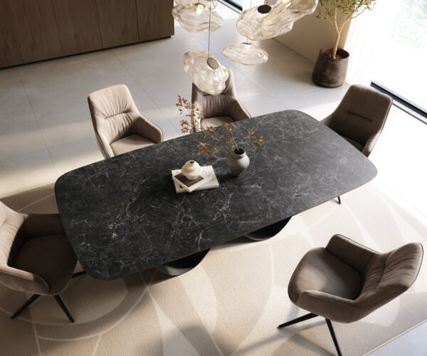 Stůl Edge z pravé keramiky Laminam® v barvě Nero Greco antracit – v elegantním oválném tvaru
