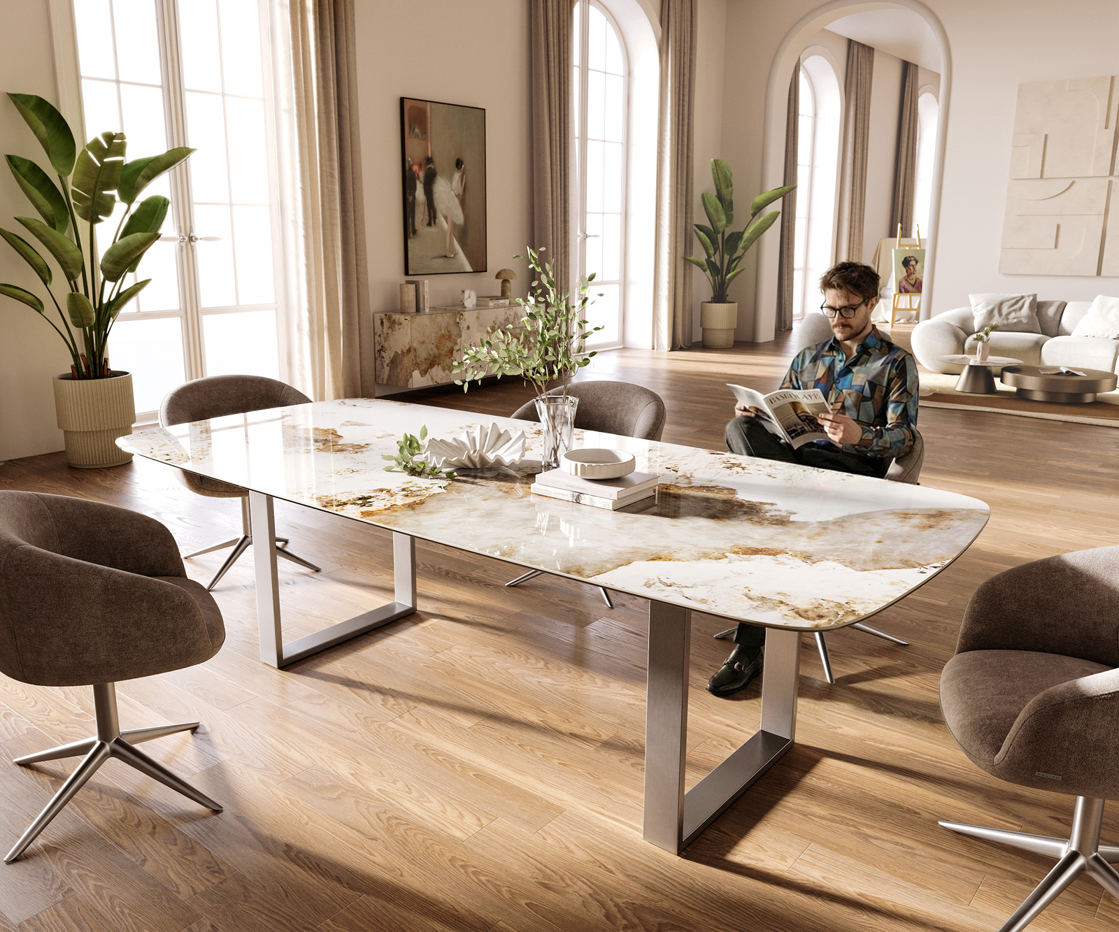 Moderní, elegantní, skvělý – jídelní stůl Edge z keramiky Minas Melange ve tvaru lodi