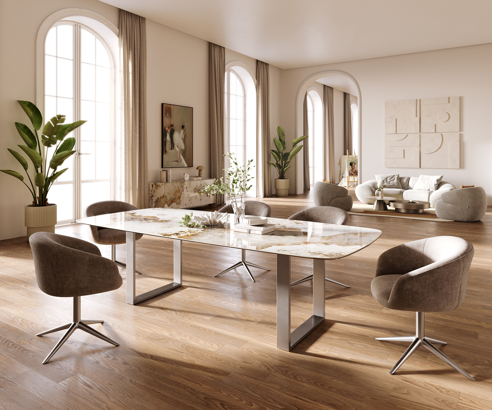 • Deska stolu je vyrobena z jedné souvislé keramické desky a získává svou jedinečnost v harmonickém celkovém vzhledu.