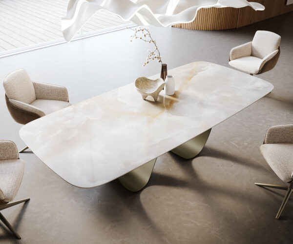 • Deska stolu je vyrobena z jedné souvislé keramické desky a získává svou jedinečnost v harmonickém celkovém vzhledu.
