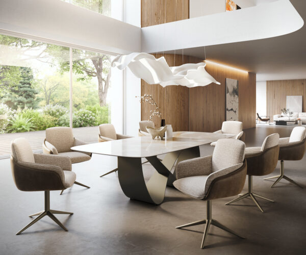 Jemný, lehký, přesto plný intenzity – jídelní stůl Edge s keramickou deskou od Iris FMG