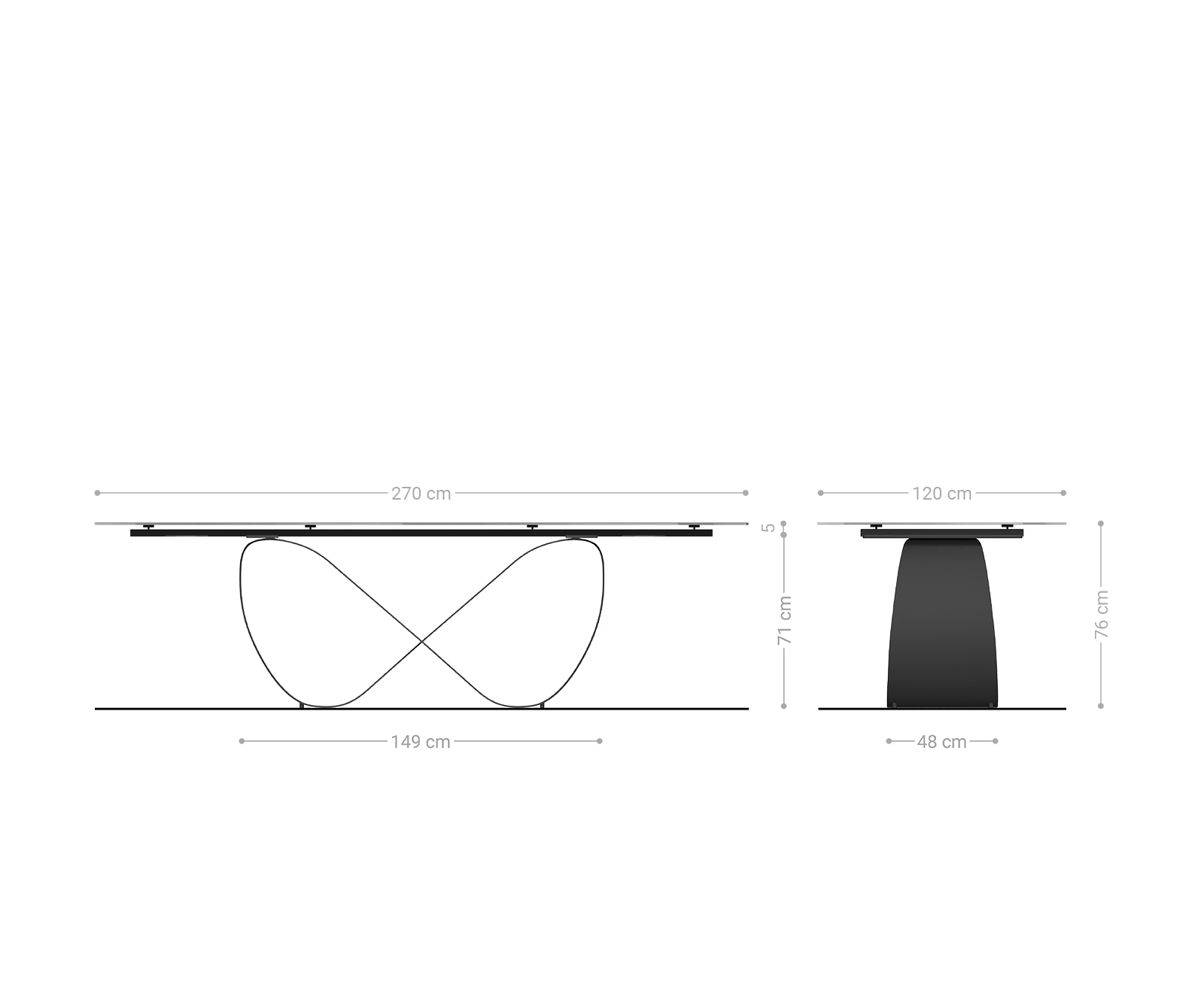 • Rozměry desky stolu: Š270 × H120 × V1 cm