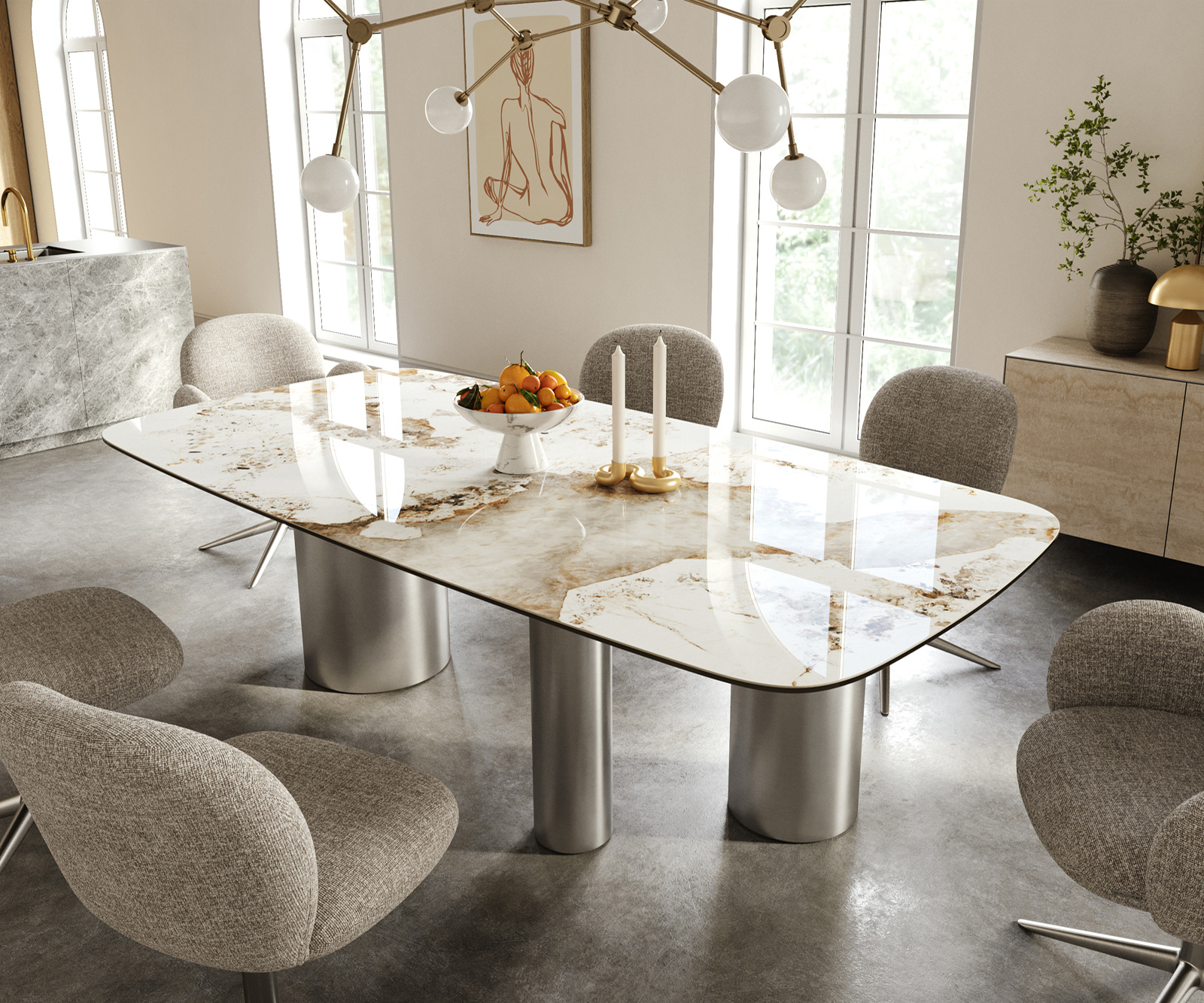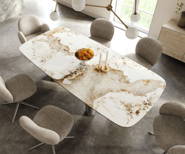 • Deska stolu je vyrobena z jedné souvislé keramické desky a získává svou jedinečnost v harmonickém celkovém vzhledu.