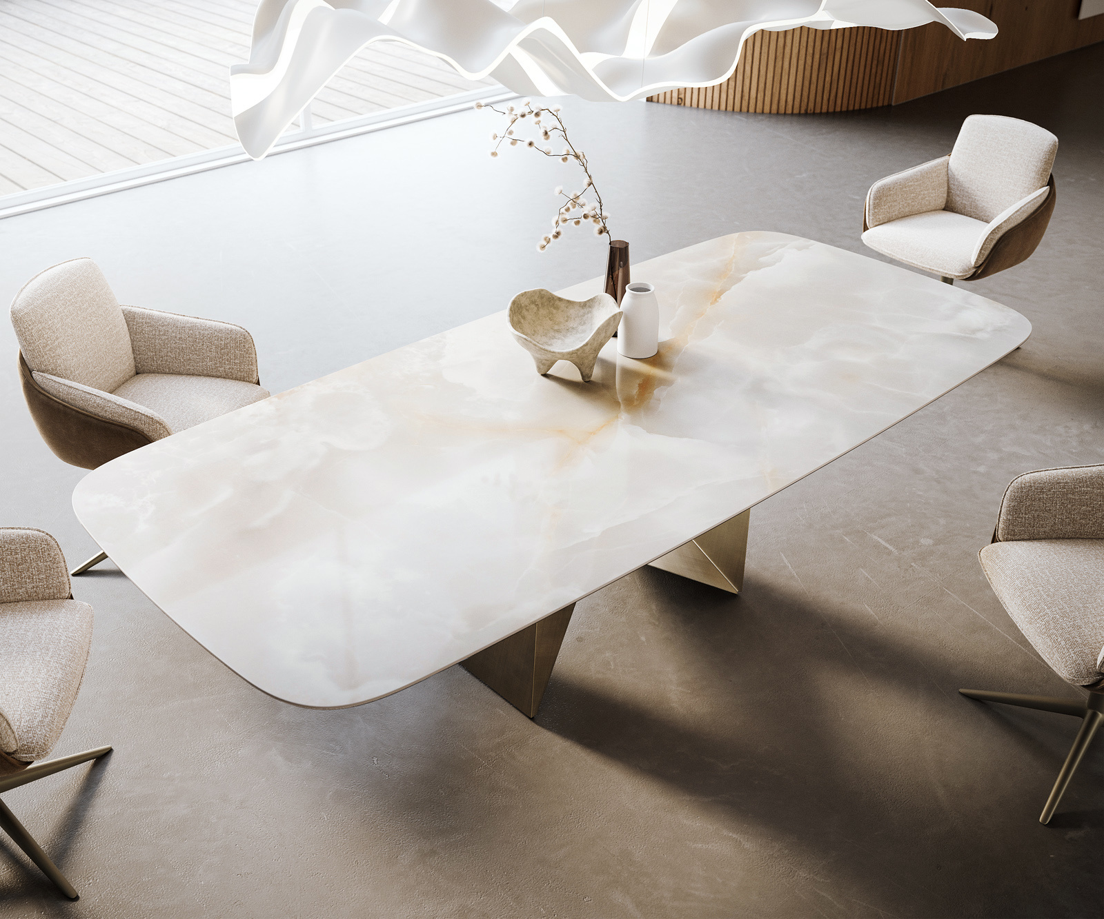 • Deska stolu je vyrobena z jedné souvislé keramické desky a získává svou jedinečnost v harmonickém celkovém vzhledu.