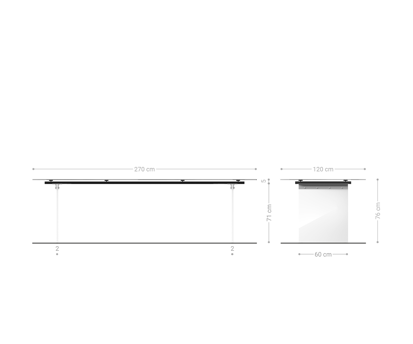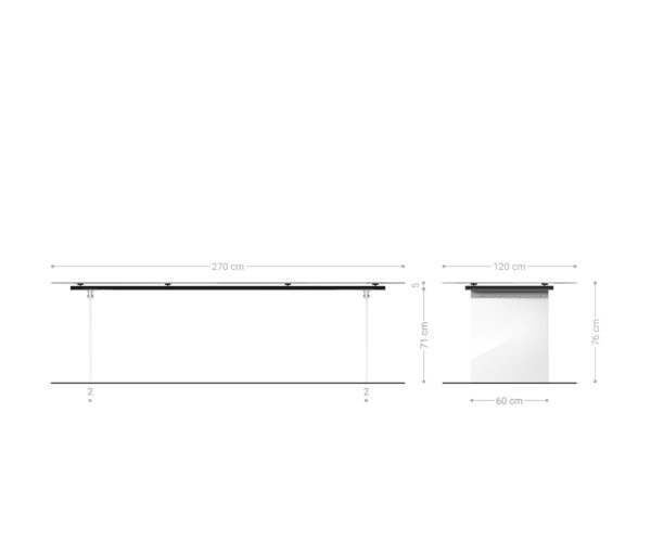 • Rozměry desky stolu: Š270 × H120 × V1 cm