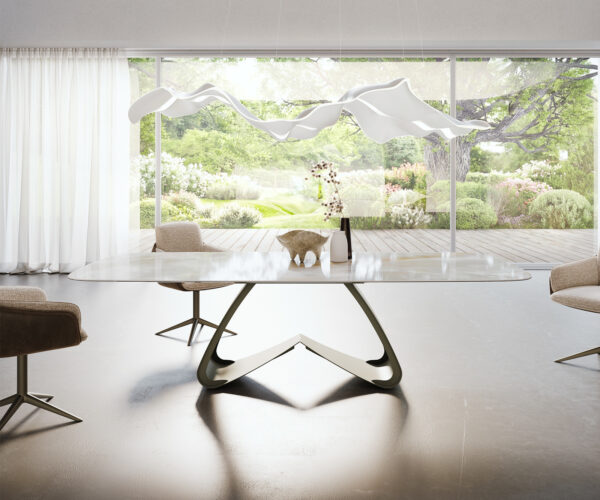 Jemný, lehký, přesto plný intenzity – jídelní stůl Edge s keramickou deskou od Iris FMG