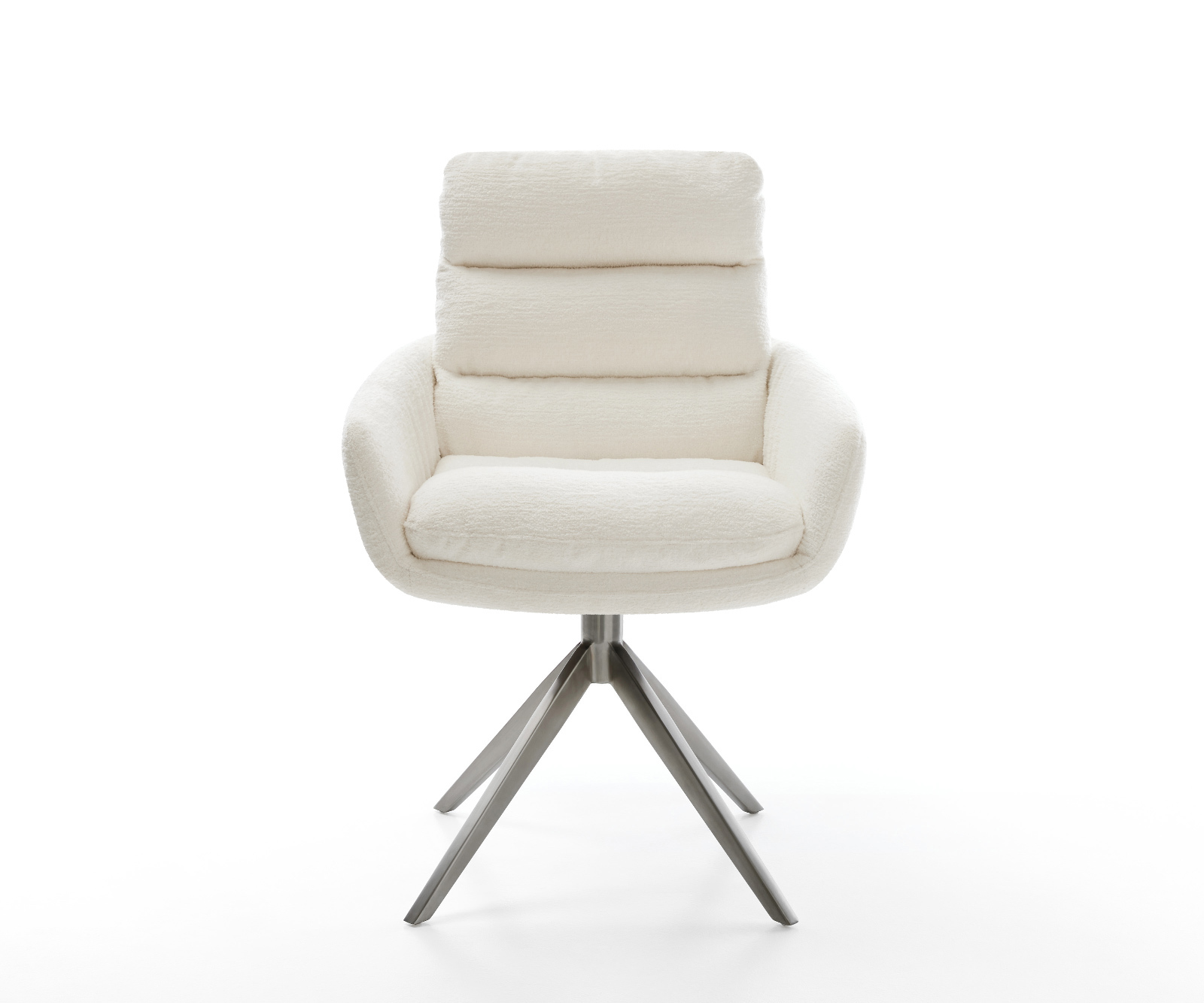 Abelia působí díky integrovaným a příjemně polstrovaným područkám obzvlášť elegantně a majestátně. Široká sedací plocha s volným polštářovým vzhledem činí židli nejen mimořádně pohodlnou, ale také stylovým poutačem pozornosti ve tvé jídelně.