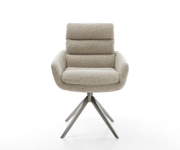 Abelia působí díky svým integrovaným a příjemně polstrovaným područkám obzvlášť elegantně a majestátně. Široká sedací plocha s volným polštářovým vzhledem činí židli nejen mimořádně pohodlnou, ale také stylovým poutačem pozornosti ve tvé jídelně.
