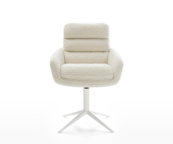 Potah z měkké plyšové tkaniny teddy v béžové barvě zajišťuje zvlášť útulný pocit při sezení. Měkká látka přináší ke stolu pohodlí a styl – ideální pro domácí atmosféru.