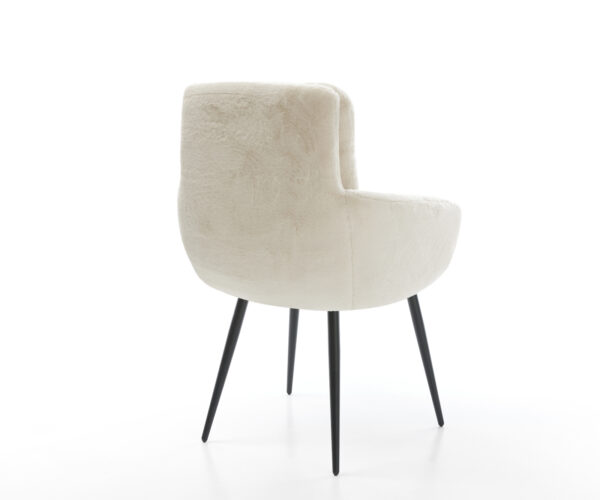 Ušlechtilý plyšový potah v jemné krémově bílé barvě dodává židli zvlášť elegantní charisma. Měkký povrch nabízí nejvyšší komfort sezení – ideální pro moderní jídelní a obytné prostory s kvalitním vybavením.