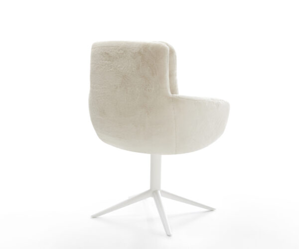 Elegantní plyšový potah v jemné krémově bílé barvě dodává židli zvlášť elegantní charisma. Měkký povrch nabízí nejvyšší komfort sezení – ideální pro moderní jídelní a obytné prostory s kvalitním vybavením.