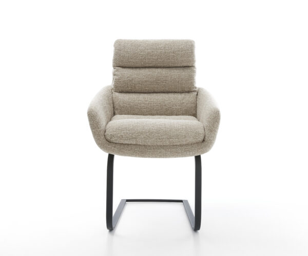 Abelia působí díky svým integrovaným a příjemně polstrovaným područkám obzvlášť elegantně a majestátně. Široká sedací plocha s volným polštářovým vzhledem činí židli nejen velmi pohodlnou, ale také stylovým poutačem pozornosti ve tvém jídelním koutě.