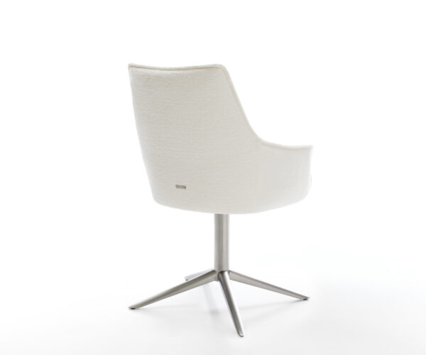 Jídelní židle Alja s područkami vytváří svým vynikajícím designem dokonalou harmonii mezi tvarem a komfortem. Elegantní linie působí nadčasově a elegantně. Propracovaný záhyb v oblasti opěradla upoutá pozornost na jemné, vertikální sklady na vnitřní straně, které krásně kontrastují s kulatou a tvarově stálou vnější stranou. Úzké područky zvou k posezení. Výborné čalounění s integrovaným, zvláště kvalitním taštičkovým pružinovým jádrem zajišťuje, že už nikdy nebudete chtít sedět na jiné polstrované židli než na Alja s područkami. Protože Alja s područkami je design, kvalita a komfort v dechberoucím provedení.