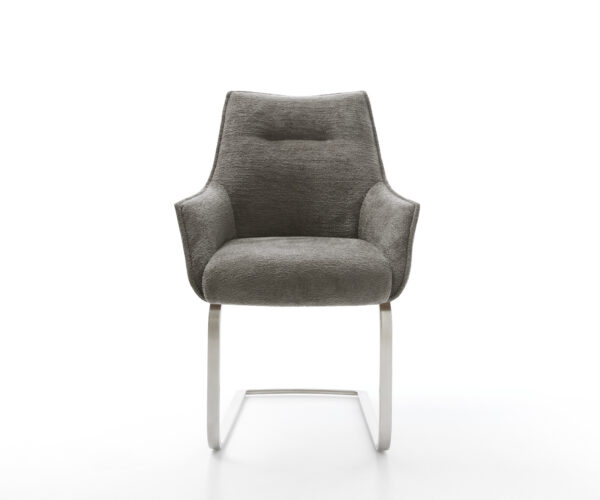 Jídelní židle Alja s područkami vytváří svým vynikajícím designem dokonalou harmonii mezi tvarem a pohodlím. Elegantní linie působí nadčasově elegantně. Propracovaný záhyb v oblasti opěradla upoutá všechny pohledy na jemné, vertikální sklady na vnitřní straně, které krásně kontrastují s kulatou a tvarově stálou vnější stranou. Úzké područky zvou k posezení. Výborné čalounění s integrovaným, zvláště kvalitním taštičkovým pružinovým jádrem zajišťuje, že už nikdy nebudete chtít sedět na jiné jídelní židli než na židli Alja s područkami. Protože Alja s područkami znamená design, kvalitu a komfort v dechberoucím provedení.