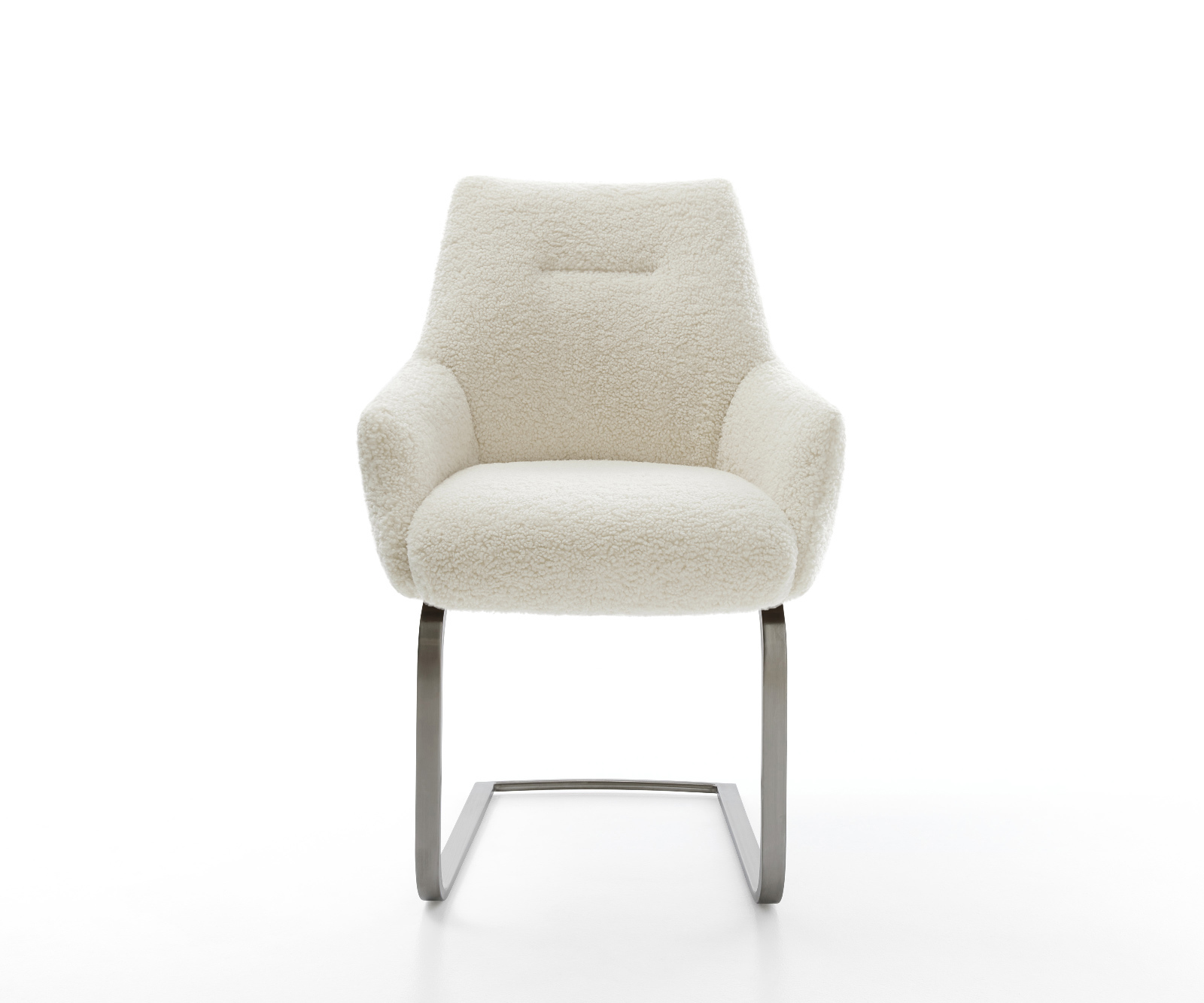 Jídelní židle Alja s područkami vytváří díky svému vynikajícímu designu dokonalou harmonii mezi tvarem a pohodlím. Elegantní linie působí nadčasově a elegantně. Propracovaný záhyb v oblasti opěradla upoutá všechny pohledy na jemné, vertikální sklady na vnitřní straně, které krásně kontrastují s kulatou a tvarově stálou vnější stranou. Úzké područky zvou k posezení. Vynikající čalounění s integrovaným, obzvlášť kvalitním taštičkovým pružinovým jádrem zajišťuje, že už nikdy nebudete chtít sedět na jiné jídelní židli než na Alja s područkami. Protože Alja s područkami je design, kvalita a komfort v dechberoucím provedení.