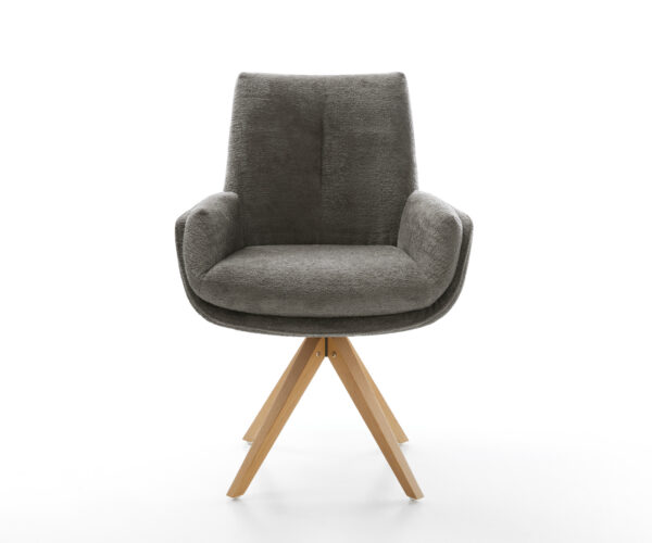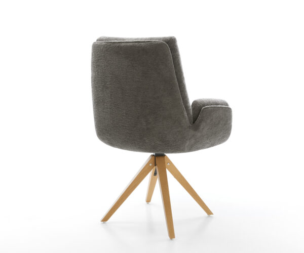 Tato židle zaujme kvalitním potahem z bouclé soft v teplém tmavě béžovém odstínu (schlamm). Jemná struktura a klidná barva dodávají nábytku moderní a útulné charisma – ideální do jídelny nebo čtecího koutku.