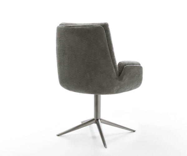 Tato židle zaujme kvalitním potahem z bouclé soft v teplém tmavě béžovém (schlamm) odstínu. Jemná struktura a klidná barva dodávají nábytku moderní, útulné charisma – ideální do jídelny nebo čtecího koutku.