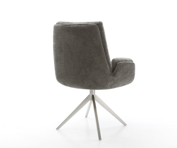 Tato židle zaujme kvalitním potahem z bouclé soft v teplém tmavě béžovém odstínu (schlamm). Jemná struktura a klidná barva dodávají nábytku moderní, útulné charisma – ideální do jídelny nebo čtecího koutku.