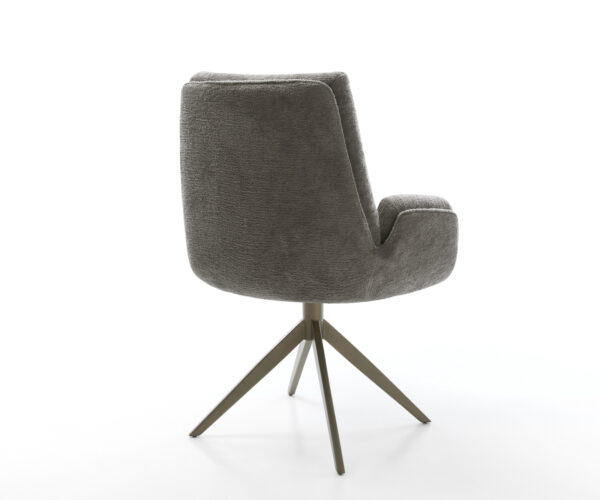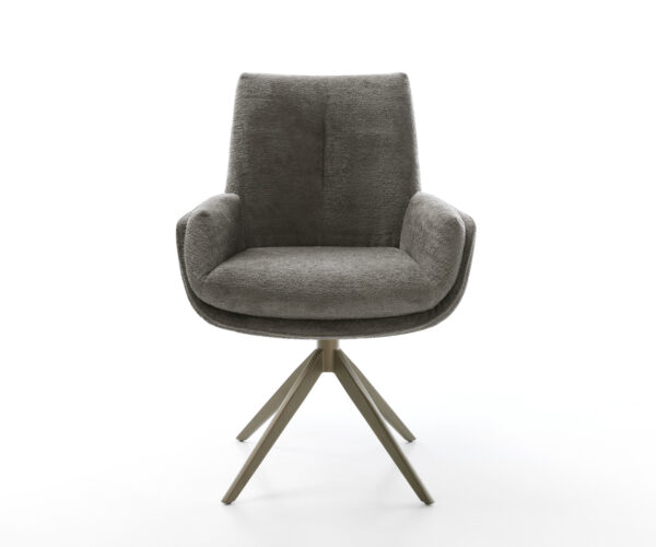 Tato židle zaujme kvalitním potahem z bouclé soft v teplém tmavě béžovém odstínu (schlamm). Jemná struktura a klidná barva dodávají nábytku moderní a útulné charisma – ideální do jídelny nebo čtecího koutku.