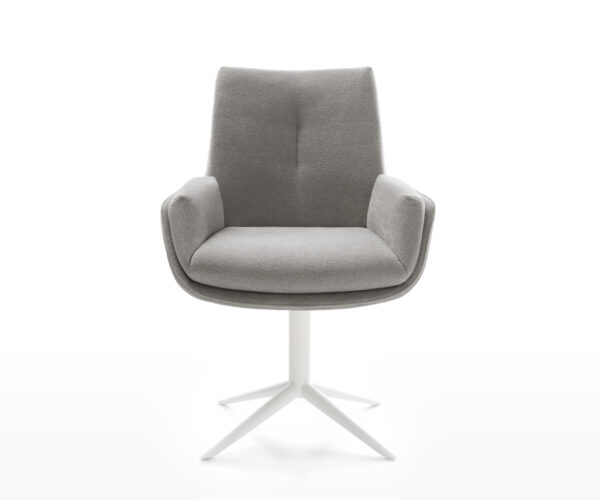 Robustní strukturovaná látka v jemné šedé barvě není jen odolná, ale zajišťuje také decentní a stylový vzhled. Ideální pro intenzivně využívané jídelní prostory s nároky na design a každodenní použitelnost.