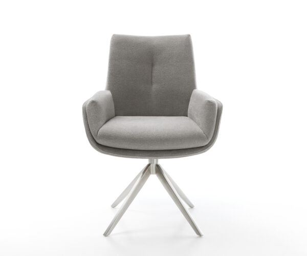 Robustní strukturální látka v jemné šedé barvě není jen odolná, ale zajišťuje také decentní a stylový vzhled. Ideální pro intenzivně využívané jídelní prostory s důrazem na design a každodenní praktičnost.