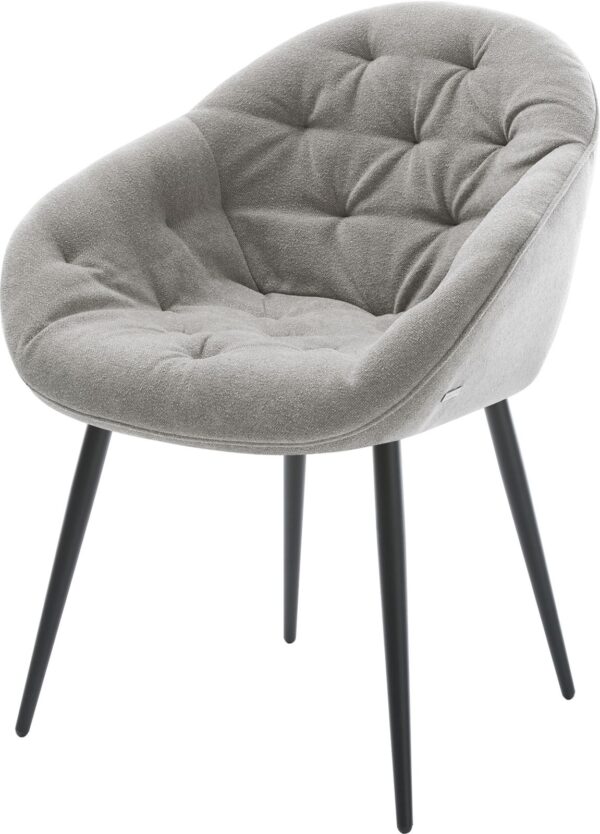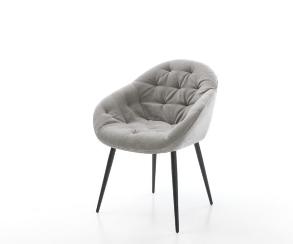 Robustní strukturální látka v jemné šedé barvě není jen odolná, ale zajišťuje také decentní a stylový vzhled. Ideální pro intenzivně využívané jídelní prostory s nároky na design a každodenní použitelnost.
