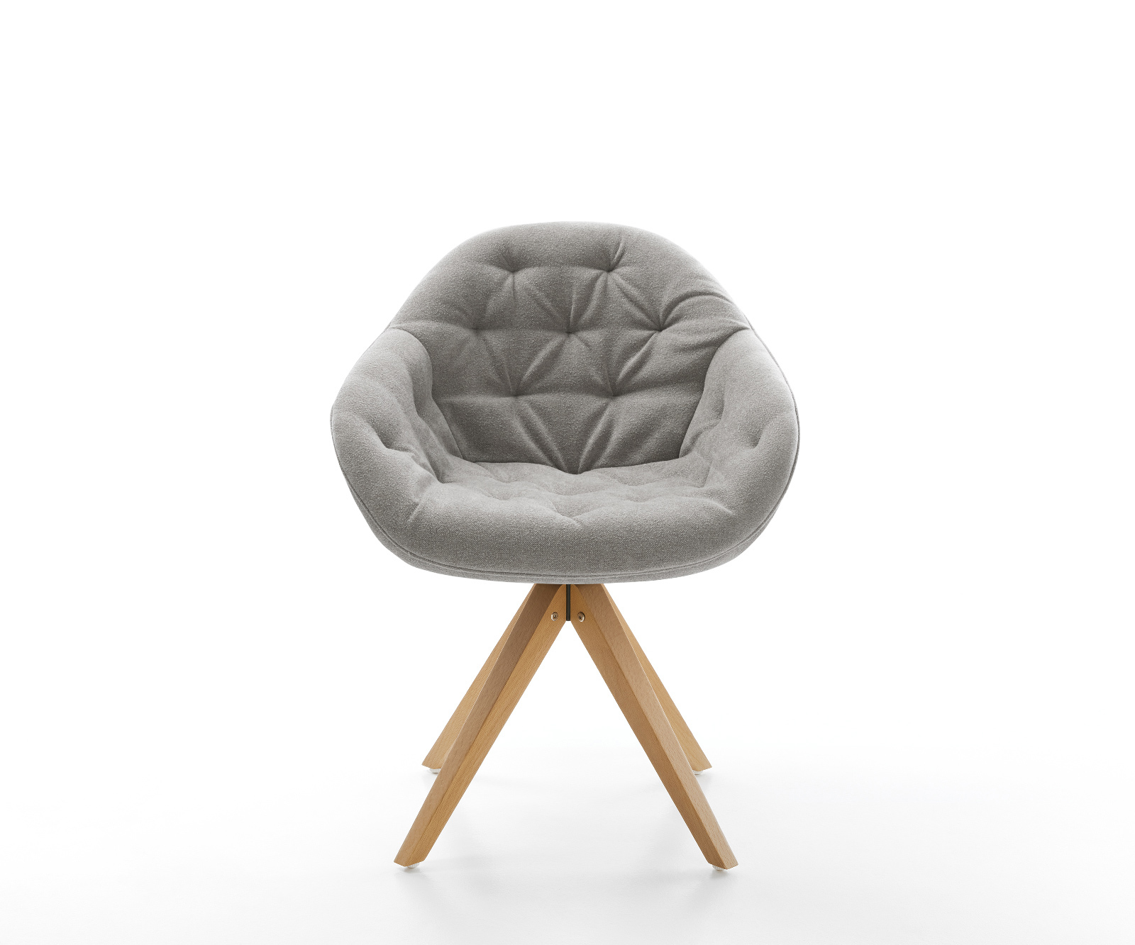 Výrazná křížová podnož kombinuje klasický vzhled díky čtyřem hranatým nohám s přirozenou lehkostí. Podnož lze otočit až o 180 stupňů a disponuje praktickou zpětnou funkcí, která ti příjemně usnadní konverzaci u jídelního stolu.