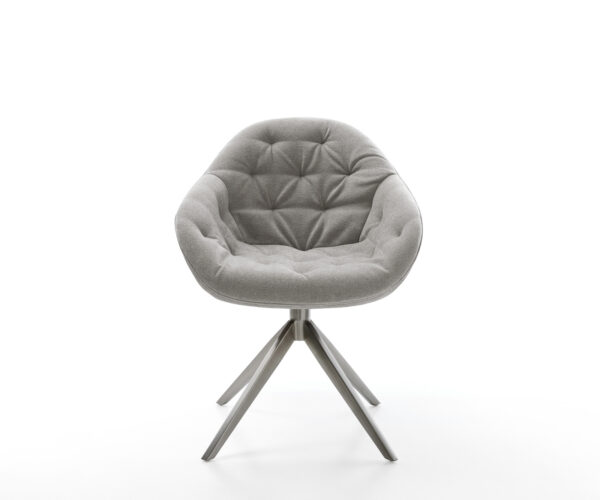 Robustní strukturální látka v jemné šedé barvě není jen odolná, ale také zajišťuje decentní a stylový vzhled. Ideální pro intenzivně využívané jídelní prostory s nároky na design a každodenní použitelnost.