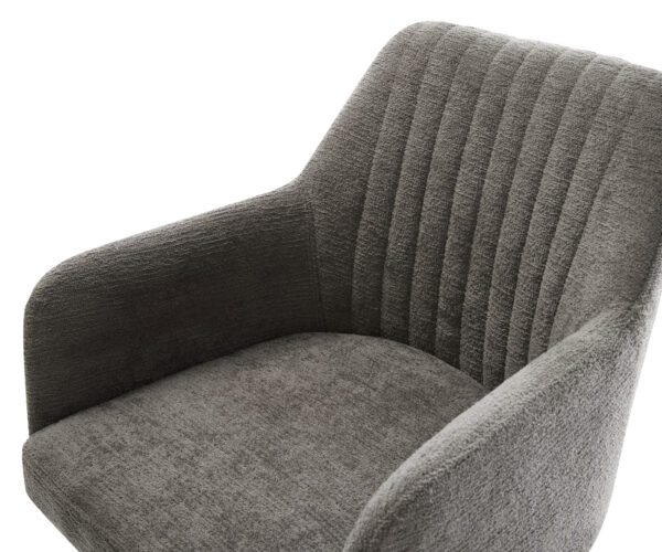 Tato židle zaujme kvalitním potahem z bouclé v teplém tmavě béžovém odstínu. Jemná struktura a klidná barva dodávají nábytku moderní, útulné charisma – ideální pro jídelní kout nebo čtecí koutek.