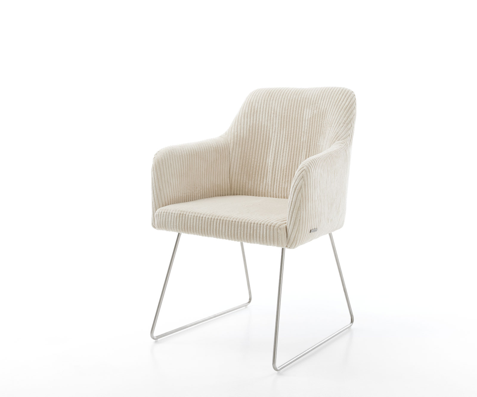 Židle je potažena módní manšestrovou látkou v teplém béžovém odstínu. Je velmi příjemná na dotek, zároveň však mimořádně odolná a snadno udržovatelná.