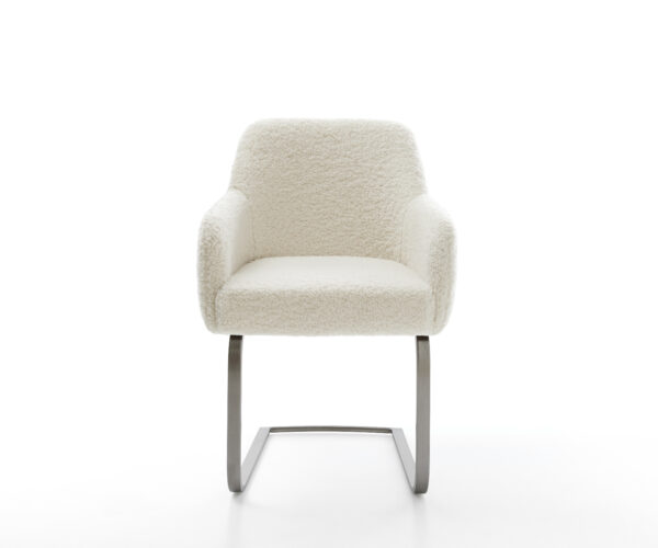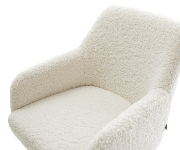 Potah z hebké teddy látky v béžové barvě zajišťuje obzvlášť příjemný pocit při sezení. Měkká tkanina přináší útulnost a styl ke stolu – ideální pro domácí atmosféru.