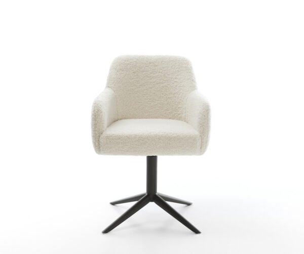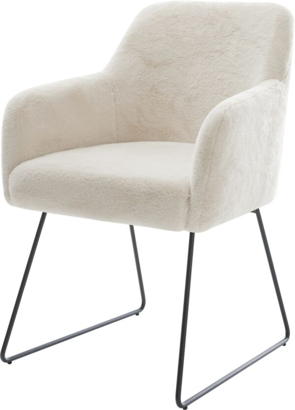 Potah z měkké teddystofové látky v béžové barvě zajišťuje obzvlášť příjemný pocit při sezení. Měkká látka přináší útulnost a styl k jídelnímu stolu – ideální pro domáckou atmosféru.